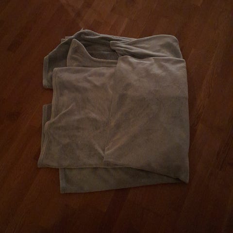 Ommeltu ponchoksi mutta hihasaumat avaamalla tästä saa 90x180cm. viltin
