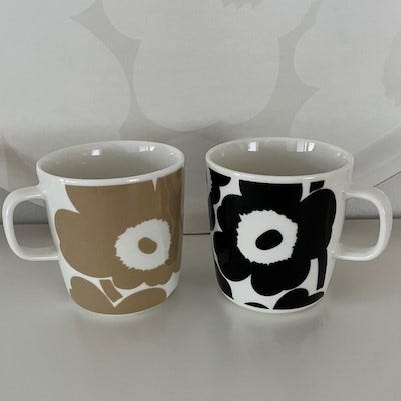 Marimekon beige unikko-mukit