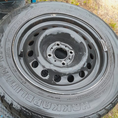 Peltivanteet Nokian Hakkapeliitta 5 renkailla. Renkaissa hyvin pintaa, mutta ovat jo vanhat eikä yhtäkään nastaa jäljellä. Vanteet ovat suorat, ei täristä. Jako 4x108 ja keskireikä 65.1. Sopii esim. Peugeot.