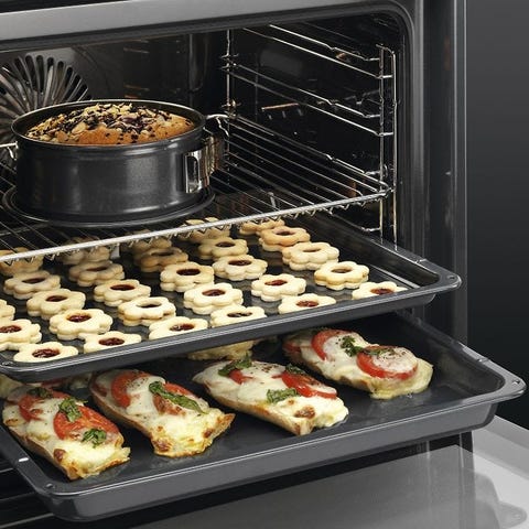 Uunissa liukukiskot, paistolämpömittari erikseen.