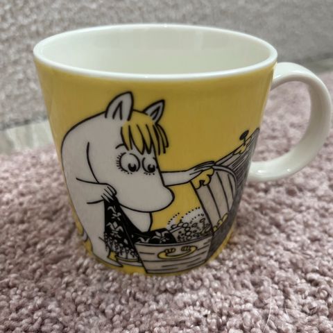 Arabia arabian muumimuki muumimukit mukit iittala iittalan 1990 1990-luvun 1990-luvulta kahvikupit kahvikuppi kahvimuki kahvimukit muumi muumipeikon muumit mukit muumeja aarrearkku keltainen keltaiset tarralla niisku neiti