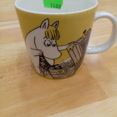 Myytävänä myös muita muumimukeja sekä astioita.
