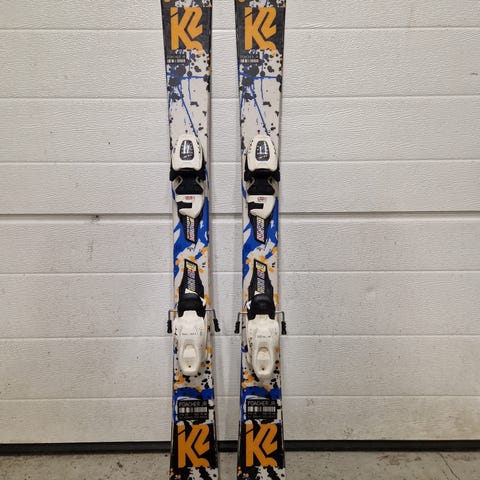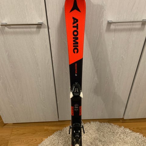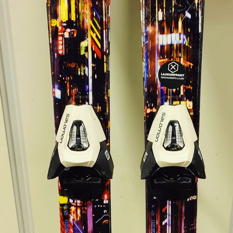 Lasten Atomic twintip laskettelusukset parkkiin ja rinteeseen, pituus 120 cm. Suksissa Marker 7.0 siteet.