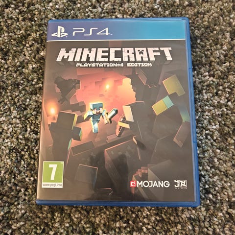 Minecraft Playstation 4 peli, jossa pelaaja voi rakentaa ja tutkia avoimia maailmoja erilaisilla hahmoilla ja rakennusmateriaaleilla.