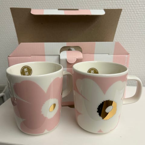 Marimekko JuhlaUnikko mukit 2 kpl- vaaleanpunainen /valkoinen/kulta