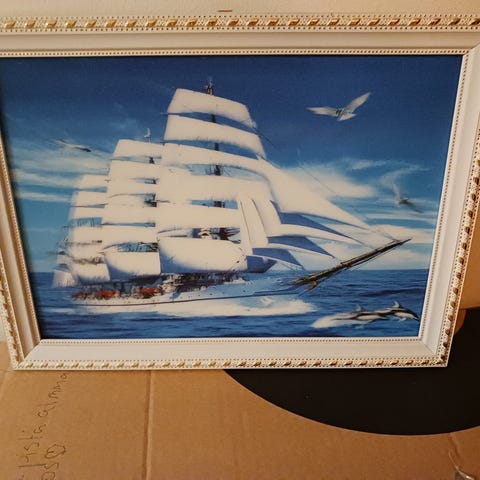 Merimaisema taulu komeilla kehyksillä. Koko 128x153. Vain nouto.