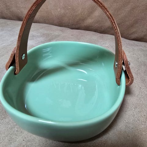 Marimekon vaaleanvihreä Pikku Koppa ruskealla nahkahihnalla.