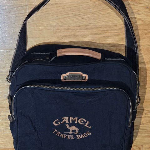 Musta aito Camelin laukku, miesten mallistoa, säädettävä olkahihna, menee yliolan. Pääosio ja etutasku, jossa kortti paikat. Vetskarit ja lukko päällä. Hylkii vettä. Nailonia. Lahjaksi annettu, mutta ei ollut käyttöä. Sopii vaikka joululahjaksi. Nouto, mh