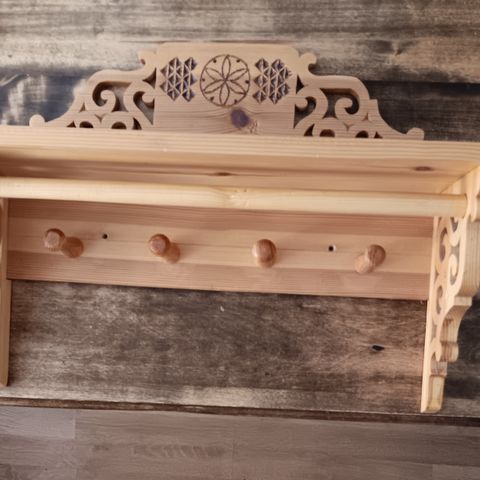 Valkoinen koristekuvioinen seinähyllykkö 3 hyllyllä ja 2 lasiovella,takaseinässä kuvassa näkyvä rako taustalevyssä muuten hyvässä kunnossa.