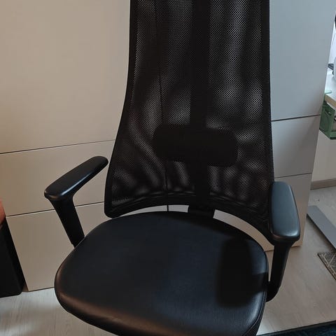 Tyylikäs moderni Ikea Järvfjället toimistotuoli, jossa on musta verkkoselkänoja ja harmaa istuinosa. Tuolissa on säädettävä korkeus ja pyörät, jotka tekevät siitä helposti liikuteltavan työympäristössä. Käsinojille paikat, mutta niitä ei mukana.Moderni toimistotuoli edustaa nykyaikaista muotoilua, jossa yhdistyvät käytännöllisyys ja mukavuus. Verkkoselkänoja tarjoaa hyvän ilmanvaihdon ja mukautuu selän muotoihin, mikä tekee siitä ergonomisen valinnan.