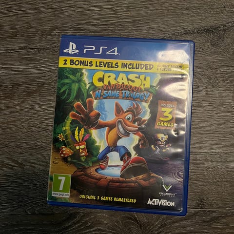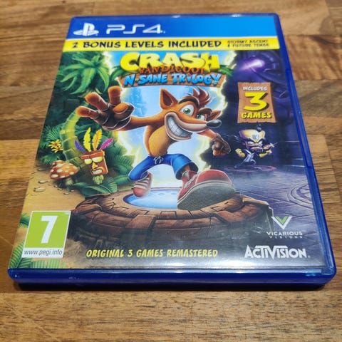 Crash Bandicoot N. Sane Trilogy Playstation 4 peli sisältää kolme peliä. Mukana on kaksi bonus-tasoa: Stormy Ascent ja Future Tense.
