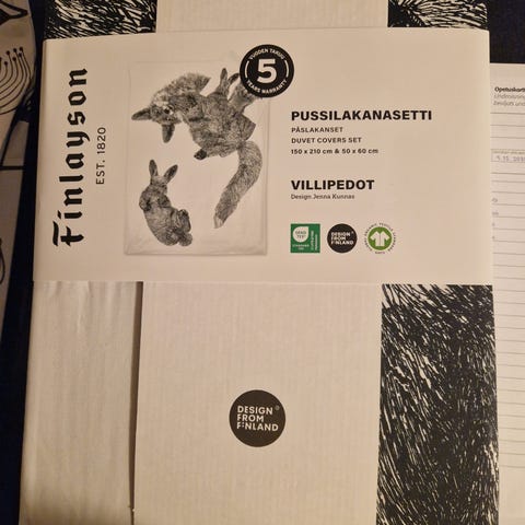 Kaksi Lotta Mäkisen suunnittelemaa pussilakana & tyynyliina -settiä. Käsittääkseni kyseistä mallistoa ei ole enää saatavilla myymälöissä ja verkossa.