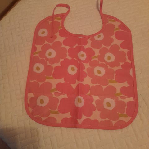 Myydään 2 muovista ja yksi silikoninen ruokalappu pakettina. Kätevät kiinnitykset, kestää konepesua. Siistit.