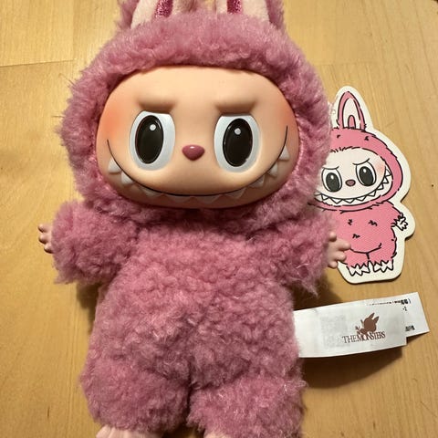 Uusi ja aito kuvan The Monsters Exciting Macaron Labubu, pussi, kortti ja laatikko, joka avattu varovasti pohjasta. Sen voi liimata takaisin, mikäli haluaa antaa lahjaksi yllätyksenä. Sopii vaikka joululahjaksi!