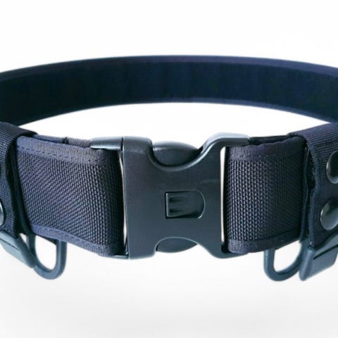 Mil-Tecin vartijamalliston 50 mm leveä ja rakenteeltaan jäykkä varustevyö. Tämä ammattikäyttöön tehty varustevyö on tehty jäykäksi, jotta taskut ja muut kannettavat varusteet pysyvät hyvin paikallaan. Vyössä on yksinkertainen, mutta loistava velcrolla toimiva pituudensäätö ja vyön saakin säädettyä pienimmillään vaikka noin puoleen normaalimitastaan. Vyössä on kestävä kaksoislukittuva muovisolki.