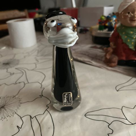 Virheetön signeerattu lättähattu, korkeus 14cm. Musta-valkoinen-kirkas lasi figuuri.