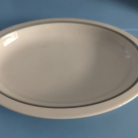 Arabia, design Inkeri Leivo Reimari-sarjan soikea tarjoiluvati 80-luvulta. Koko 36 x 17 cm. Käytetty muutamia kertoja, joten joitakin käytön jälkiä.
