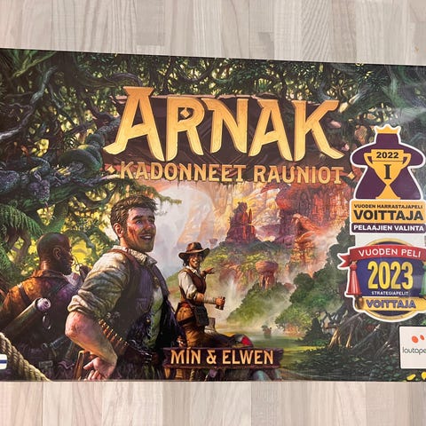Suomen Aarre lautapeli, jossa pelaajat voivat tutustua Suomen historiaan ja kulttuuriin. Peli sisältää pelilaudan, pelinappuloita ja kortteja, jotka liittyvät Suomen aarteisiin ja historiaan. Sopii perheille ja historiasta kiinnostuneille. Peli on uusi ja avaamaton (ks. teippi viimeisessä kuvassa).