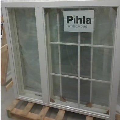 Avautuva ikkuna, jossa yläosassa 400 mm korkea tuuletusikkuna, jossa metallinen hyttysverkko.