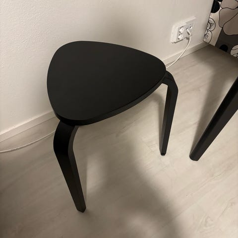 Vihreäksi maalattu Aalto-jakkara -mallinen Ikean tuoli. Maalipinta suhteellisen hyvä, pientä naarmua löytyy. Puuta.