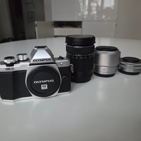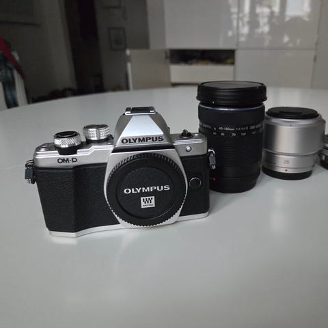 Todella vähän lauottu kamera (SC n. 5000) mukaan neljä akkua, joista kolme alkuperäisiä Olympus akkuja. Kaksi laturia, seinälaturi ja usb-c matkalaturi.