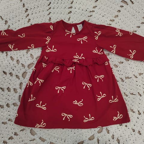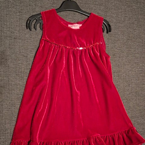 Holly & Whyten punainen joulumekko 86cm. Kiiltävää satiinia? Sisävuori himmeämpää kangasta. Sisushelman kaksi tyllireunusta tekee helmasta muhkean ja kauniisti laskeutuvan.