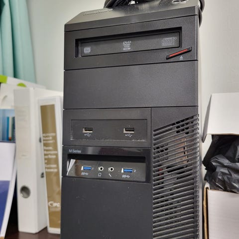 Työkäytössä ollut pöytäkone. Pyörittää perusohjelmat ongelmitta (Netin selaus, videoiden striimaus, Excel, kuvien käsittely)