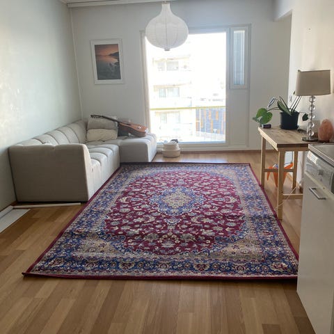 Nätti ja hyväkuntoinen Vindum-nukkamatto tuntuu ihanan pehmeältä jalkojen alla korkean karvansa ansiosta. Matto tulee eläin- ja lapsivapaasta taloudesta. Pesty kesällä ja ollut sen jälkeen käyttämättömänä varastossa.