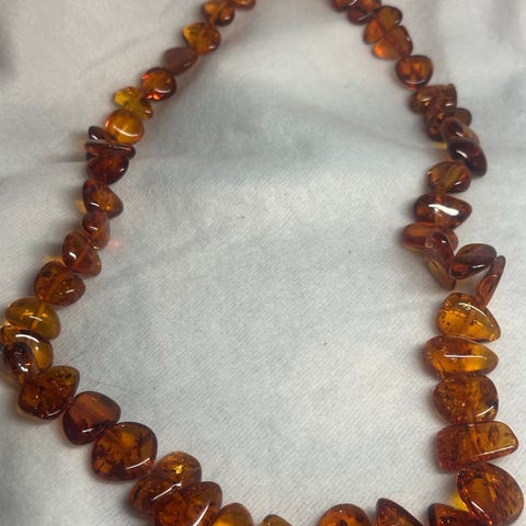 Erittäin kaunis meripihka kupari kaulakoru. Ketjun pituus 38cm + 8cm.