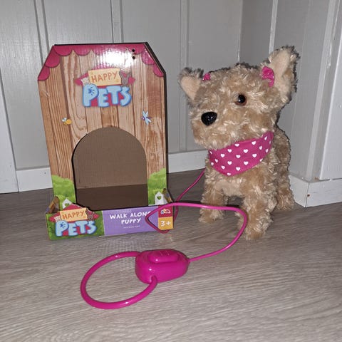 Kävelevä ja haukkuva koira, toimii moitteettomasti.