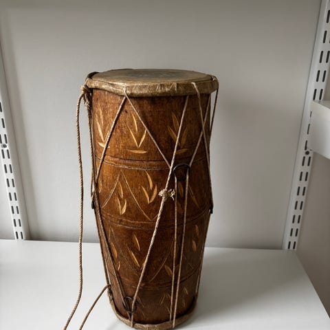 Hyvässä kunnossa oleva puusta tehty rumpu.