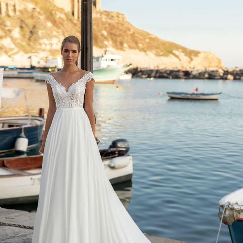 Vuonna 2021 ostettu häämekko VienoHelsinki liikkeestä. Merkki Modeco (mallia en muista). Pientä korjausta on tehty mittojen osalta, mutta tosiaan on käyttämätön.