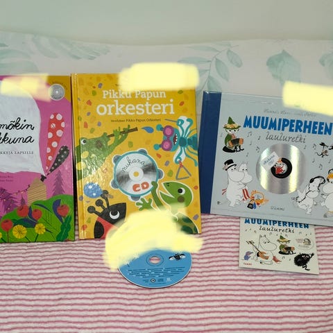 Myydään paljon musiikkileikkikoulumateriaalia: nuottikirjoja, opettajan oppaita, muskarin tehtäväkirjoja, taidekasvatuksen oppikirja, Suuri toivelaulukirja 1, soiva tuutulaulukirja...