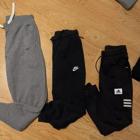 Oikealla puolella mustat Nike ja Adidas housut 18/kpl