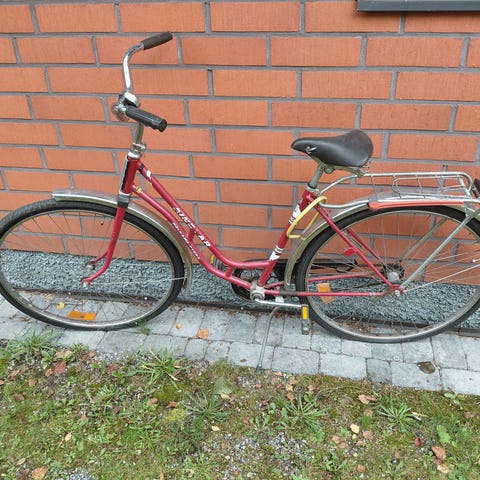 Jämerää tekoa oleva toimiva perus polkupyörä. On vähän ajan patinaaki, mutta toimii ja kumit pitää ilman sisä puolella. Tällä päästelee vaikka läpi talven tuulen ja tuiskun. On raakempi saattonen laite vaikka ei oo vaihteitakaan. En tohtinu ite ajaa täysiä.