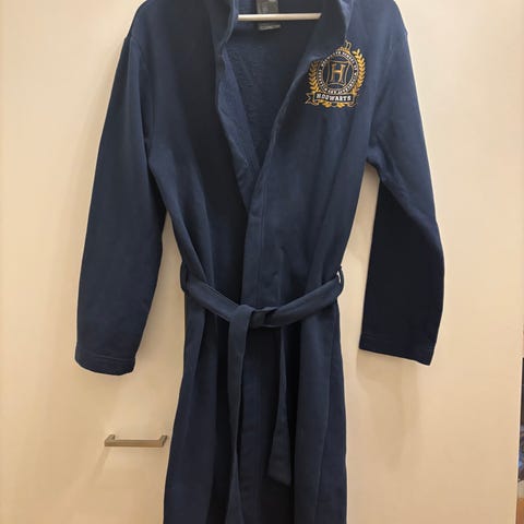 Kuin uusi lasten Harry Potter Gryffindor kylpytakki. Tilattu EMP:ltä. Koko noin 140-150cm hyvä, menee kyllä pienemmälle/isommallekin, koko s/m. (Olka-helma n.87cm, kainalo-kainalo n. 53cm, hiha sisäsauma n.46cm)