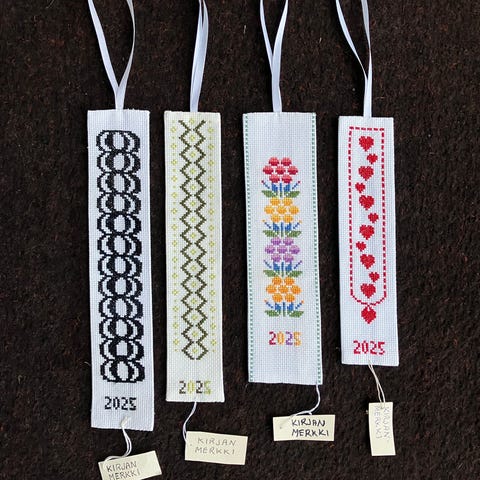Myynnissä kuvan kirjanmerkit. Hinta 8€ kappale. Valitse omaksi tai lahjaksi ja tule noutamaan. Maksu käteinen tai Mobile Pay.