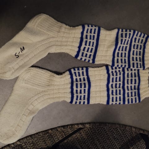 Itse käsin neulottuja Pitkävartisia villasukkia.