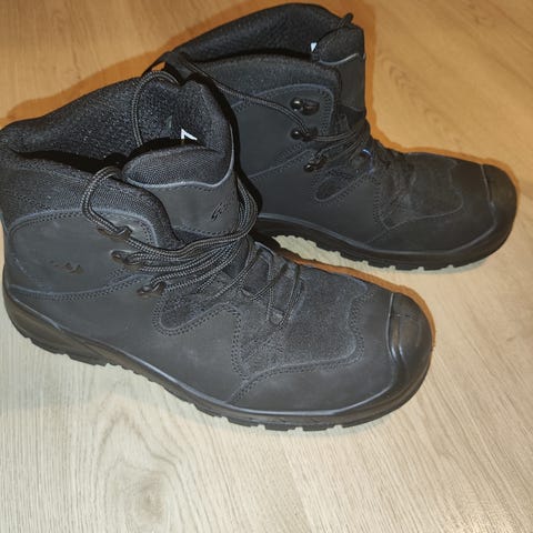 Siistit Gesto-merkkiset turvakengät. Käytetty sisäpohjallisen kanssa (joka nyt otettu pois), joten sisäpohja on pysynyt siistinä. Koko 42, sisäphja 27 cm