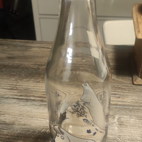 Vaaleanpunainen Muumi pikkumyy juoma pullo ollut n 1v Käytössä ja vain vettä juotu, pesty käsin välillä. Ihan pienet jäljet pohjassa/alareunassa —> kuva. Oliskaan koko 0,7l…