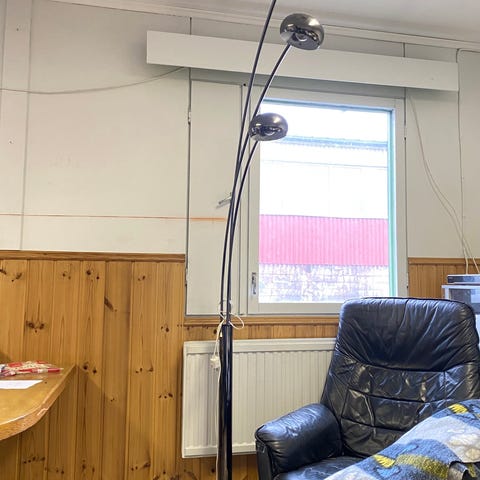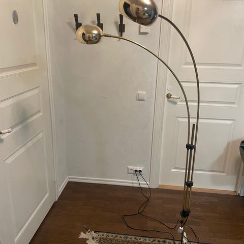 Kuvanmukainen kullanvärinen vintage kaarivalaisin 80 - 90 luvulta. Kolme valoa. Täysin toimiva