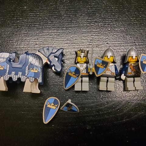 Useita LEGO Castle -ritarihahmoja (mm. lohikäärmemies, ritarit)