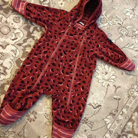 Popin punainen windfleece / fleecehaalari / vaunuhaalari koossa 68. Käytetty, mutta hyvässä kunnossa. Pieni reikä käännettävän lahkeensuun kankaassa (kuva) ei vaikuta käyttöön. Mielestäni reilua kokoa, meni pitkään kun avaa hihat ja lahkeet.