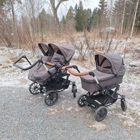 Myydään hyväkuntoiset Emmaljunga double viking 735 tuplavaunut. Istuimet värissä Outdoor Timber. Istuimet käännettävissä ja kaikki toiminnot toimii. Lukittavat eturenkaat ja nämäkin toimivat.
