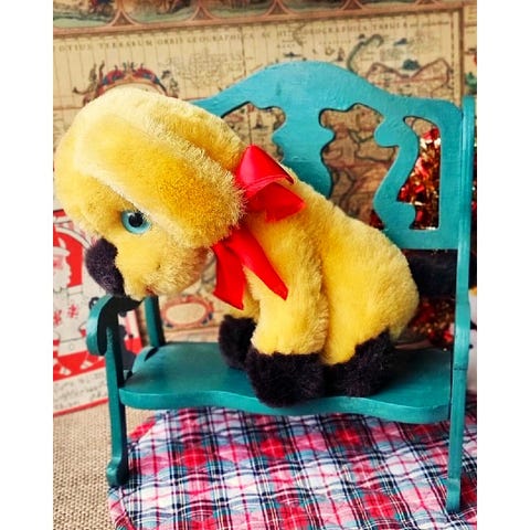 Vintage Oranssinkeltainen Villakoira Pehmo 1960-luvulta