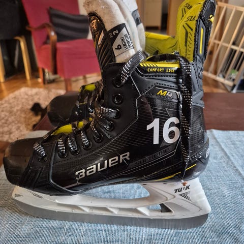 Myytävänä Bauer Supreme M4 luistimet, koko 6, Fit2. Luistimissa Fly-X terät. Tästä käytännössä pelkkien terien hinnalla laadukkaat luistimet huipputerillä. Lähetys.