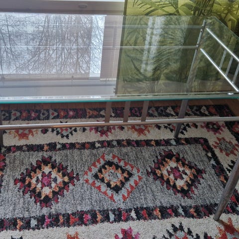 Musta lasipöytä muuton alta pois