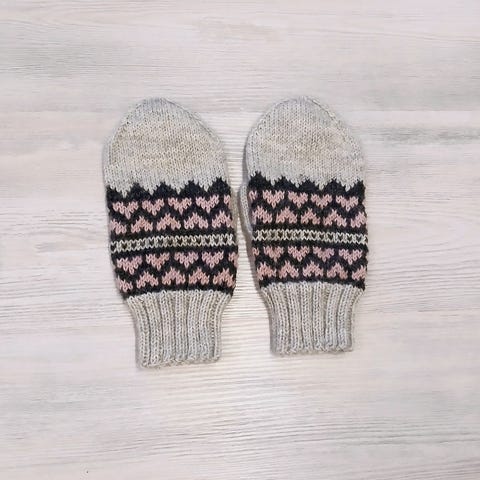 Uudet neulotut lapaset, naisten koko. Lankoina käytetty Novita Nalle ja Gjestal Maija.