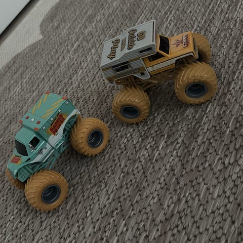 2 Hot Wheels Monster Jam hyppyriä + 2 monsteriautoa