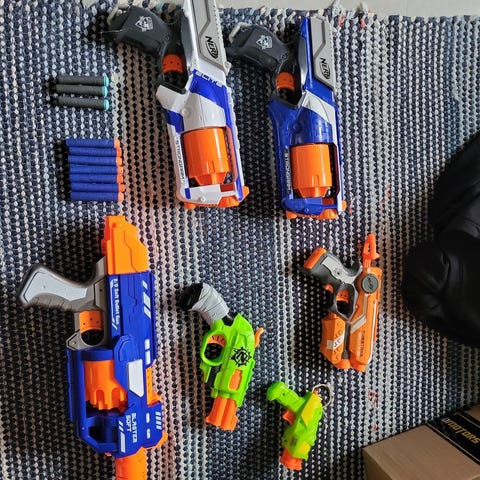 Annetaan läjä Nerf pyssyjä.